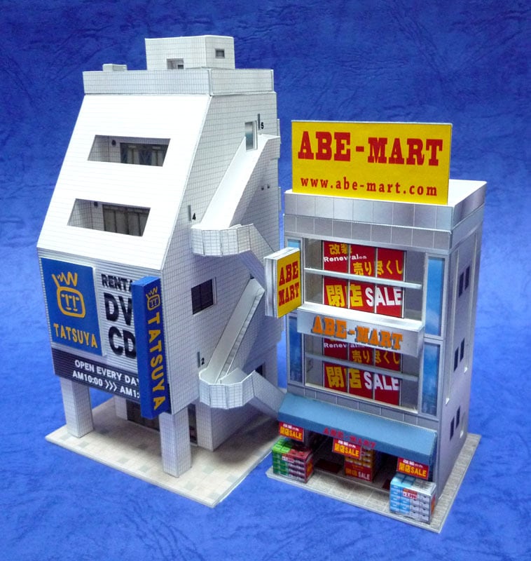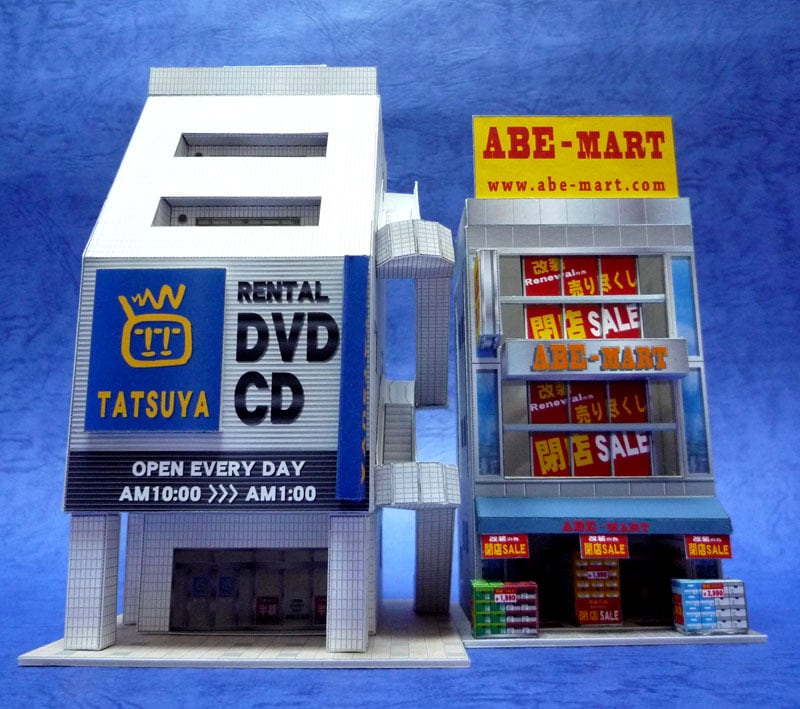○自作のNゲージ用(1/150)ストラクチャーになります。レンタルDVD店、靴量販店をイメージして作りましたお客様自身で制作するキット商品です。