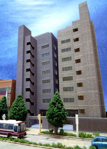 ○自作のNゲージ用(1/150)ストラクチャーになります。街中にあるようなマンションをイメージして作りましたお客様自身で制作するキット商品です。