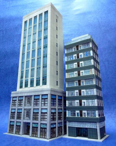 ★極力細かい部品や立体表現を省いた、お手軽高層ビル-2棟セットの印刷済みキット商品です★