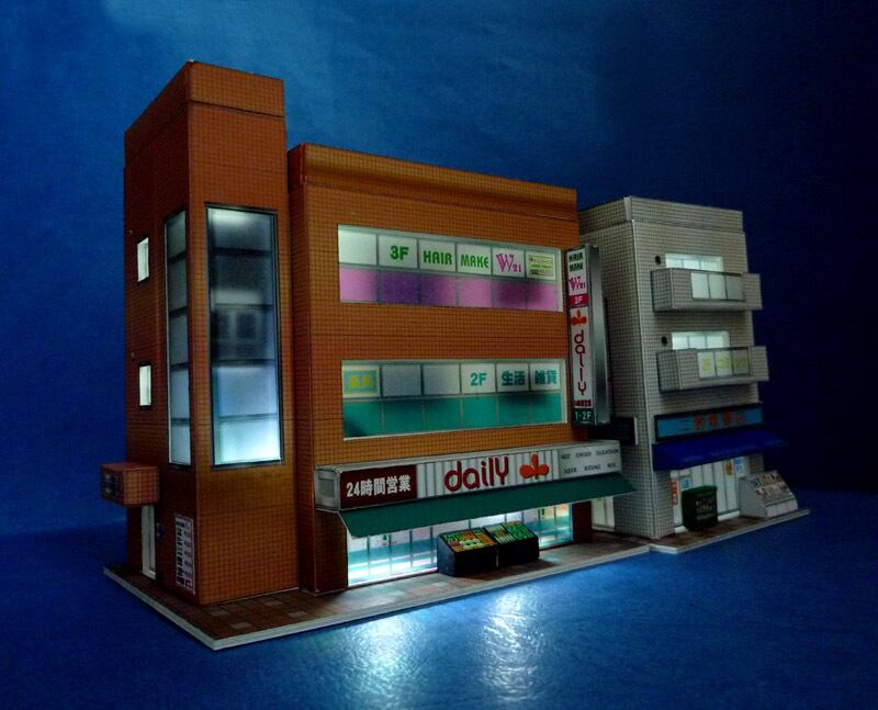 (印刷版) ペーパークラフトで作る「駅前スーパーと小さな書店」 2個セット(Nゲージ・サイズ)